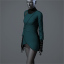 With its curved, sinuous lines and high black collar, the 'Rocket' dress is equally reminiscent of a rocket breaking through the atmosphere and a dagger piercing through skin. A single join snakes through a front of poison green, overlaid with a fine shoulder brooch, and terminating in a short V-shaped edge, while the hands are covered in silver clasps overlaying a fine pair of black gloves.